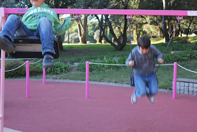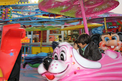 ... duas entrevistas de manhã. Um texto escrito à hora do almoço. E depois levei os três ao Parque da Serafina e, a seguir, revivi os tempos em que havia Feira Popular. Porque lá, no mesmo sítio, em Entrecampos, estão vários carrosséis: roda, carros de choque, barcos de choque, uma mini montanha russa, e outras diversões. Divertimo-nos à grande.