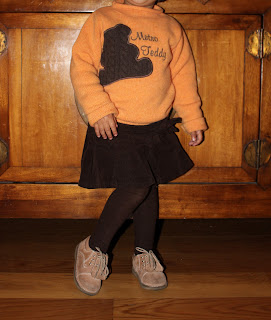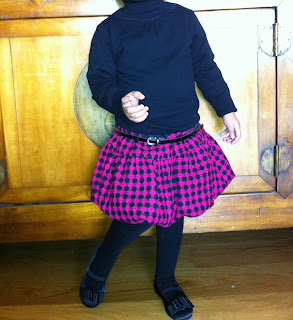 A Primark ficava mais longe, a Calzedonia estava mesmo aqui à mão de semear. Obrigada pelo conselho: comprei 5 collants (uns pretos, uns azuis, uns cor-de-rosa, uns bege e uns verde-garrafa) por 15 euros. E dos bons. Pequena Madalena já pode usar a sua saia rosa e preta, muito Chanel, com a camisola preta, os collants pretos e as pequenas sabrinas da mesma cor. Hoje já vestiu, só para experimentar. Não se aguenta.