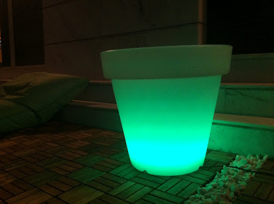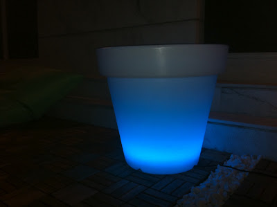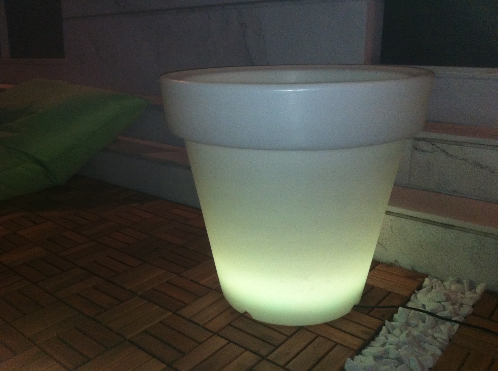 O vaso é lindo, enorme, tem um comando que permite mudar as cores ou então tornar o vaso uma espécie de disconight maluca, com as luzes intermitentes a alta velocidade (ou a baixa, como se quiser).