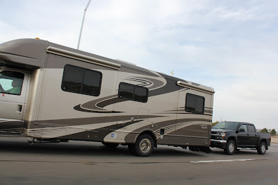 Vimos imenso disto: auto-caravanas gigantescas, a rebocarem os carros
