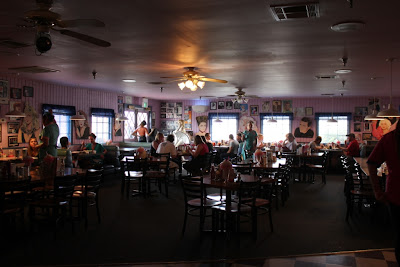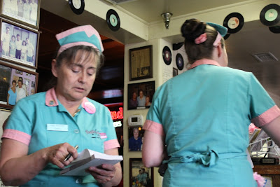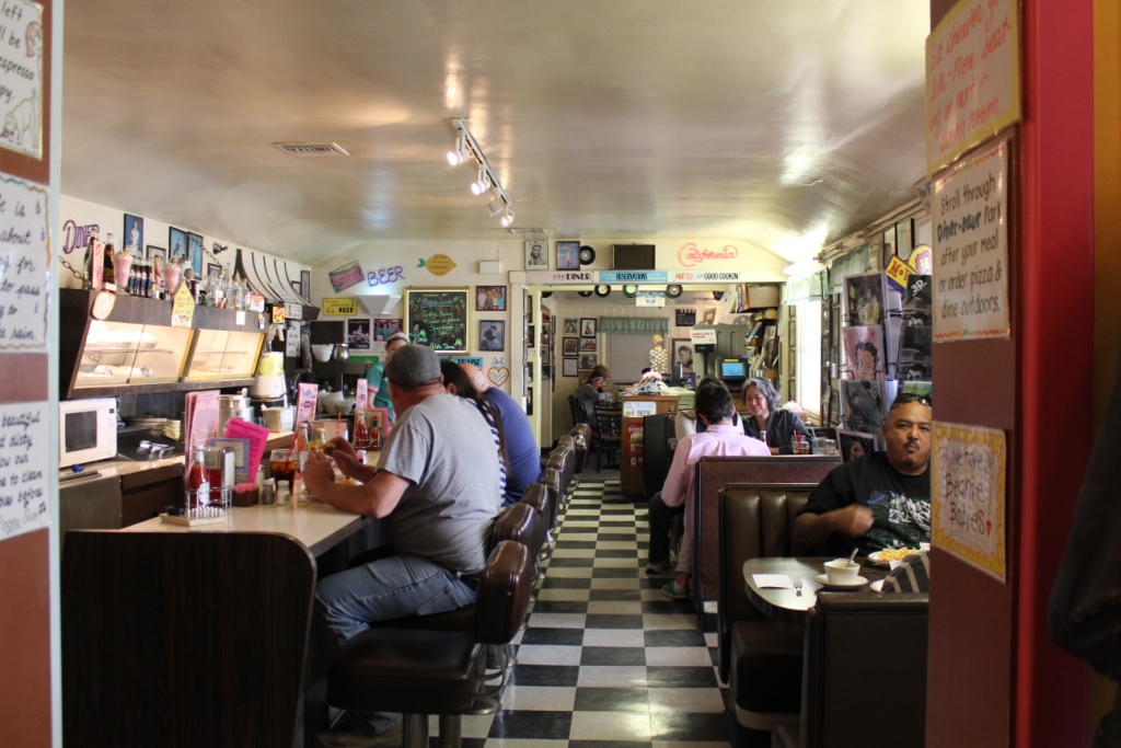 Os letreiros estão por toda a parte, durante umas boas milhas na estrada que liga Los Angeles a Las Vegas. É impossível, durante o percurso, não dar por eles. Anunciam que, numa saída próxima, poderão comer no restaurante «Peggy Sue». Os nossos amigos já nos tinham falado do sítio e tinham recomendado, por ser um lugar típico dos anos 50, como que parado no tempo. Não exageraram. Era, de facto, imperdível. Um regresso ao passado. Mais uma vez... um filme. Perfeito, para terminar a viagem em beleza.