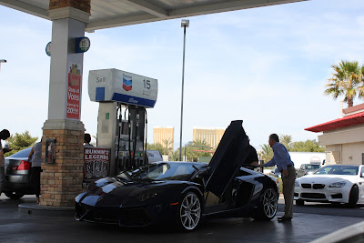 Este Lamborguini parou na bomba e o dono, o senhor que se vê na foto, esteve com uma pachorra de chinês a mostrar o motor aos curiosos e a afastar-se para que dezenas de homens a babar lhe fotografassem o bólide
