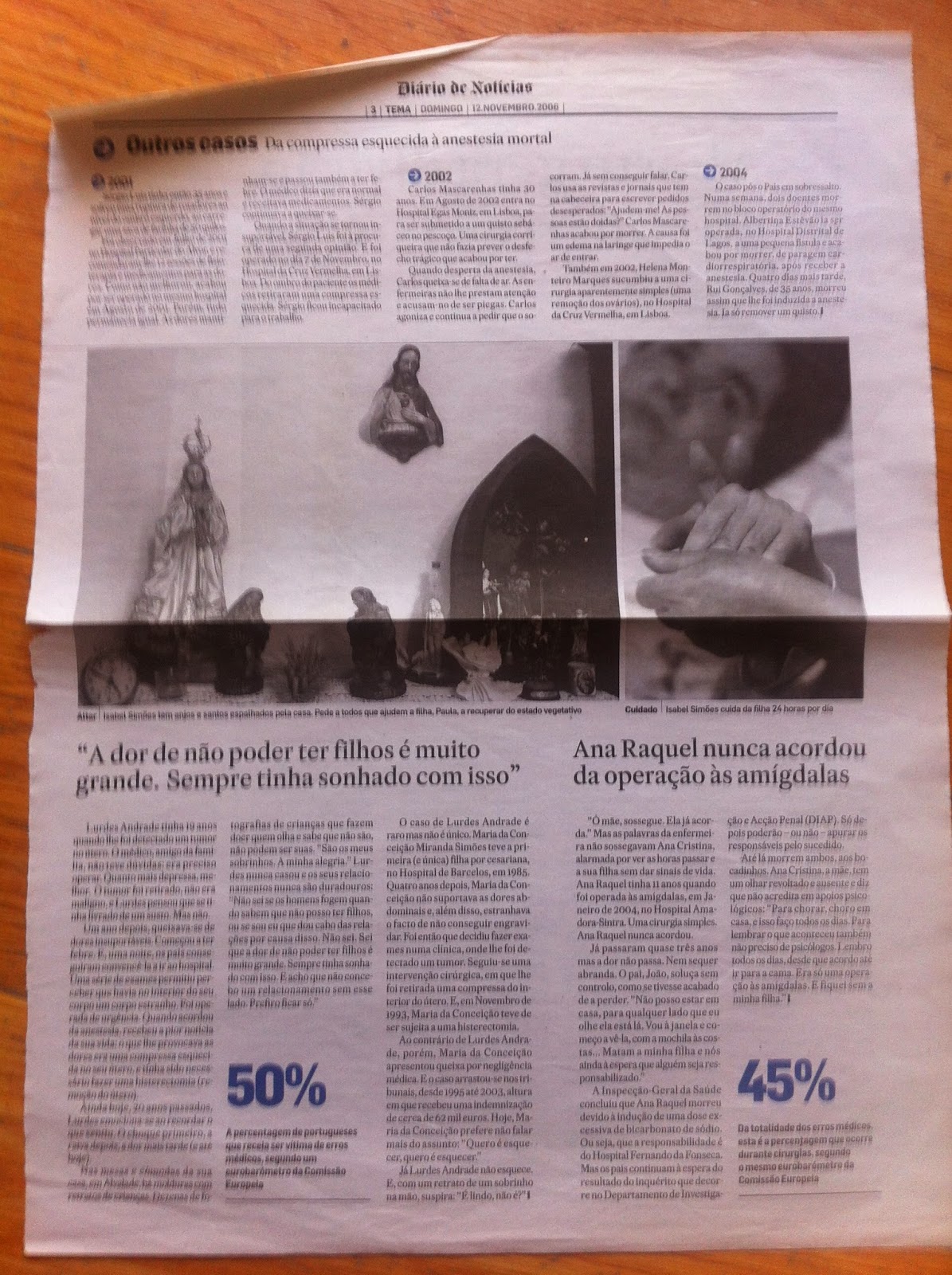 Eram várias histórias de pequenas cirurgias que correram mal mas a parte dedicada à Paula Simões era assim: