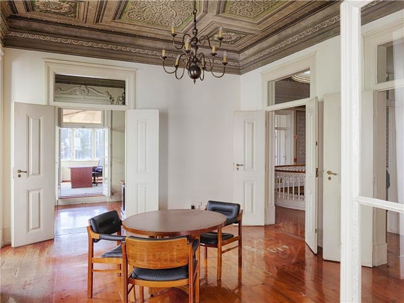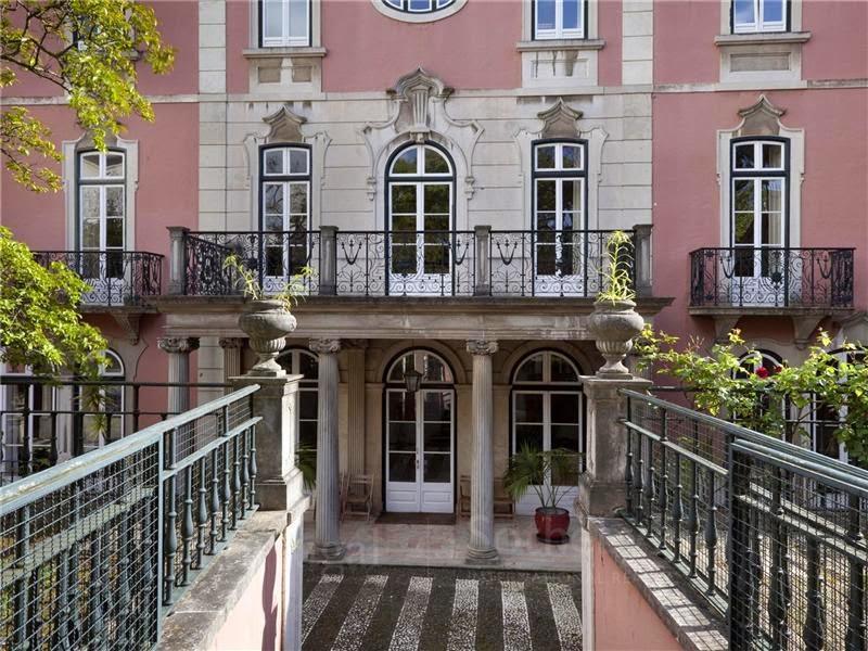 Ora então esta humilde moradiazinha fica junto à Avenida da Liberdade e tem 20 quartos. Era capaz de ser muito para nós mas, por outro lado, podíamos sempre pôr a família toda a viver junta, em alas, e ia ser uma animação. Ou então, podíamos fazer daqui um hotel de charme, pequenino e maravilhoso, onde também vivêssemos, felizes e contentes. Tem um magnífico jardim, pavilhão de caça, casa de caseiros e até canil (ui, Mojito, para onde tu ias direitinho que nem um fuso - deve ser um canil com azulejos do Séc.XVIII, chique a valer).