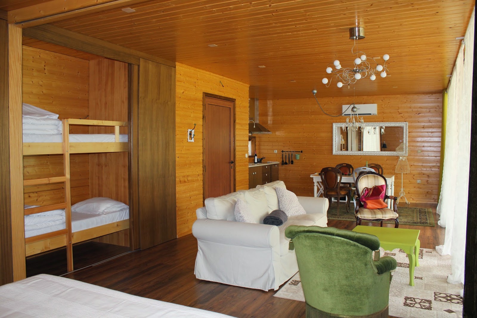 8 casinhas de madeira, cada uma com o seu tema: Casa Futuro, Casa Belle Époque, Casa Vintage, Casa Sem Nome, Casa Floresta, Casa Industrial, Casa Central e Casa Colonial. Nós ficámos na Belle Époque. E era tão querida…