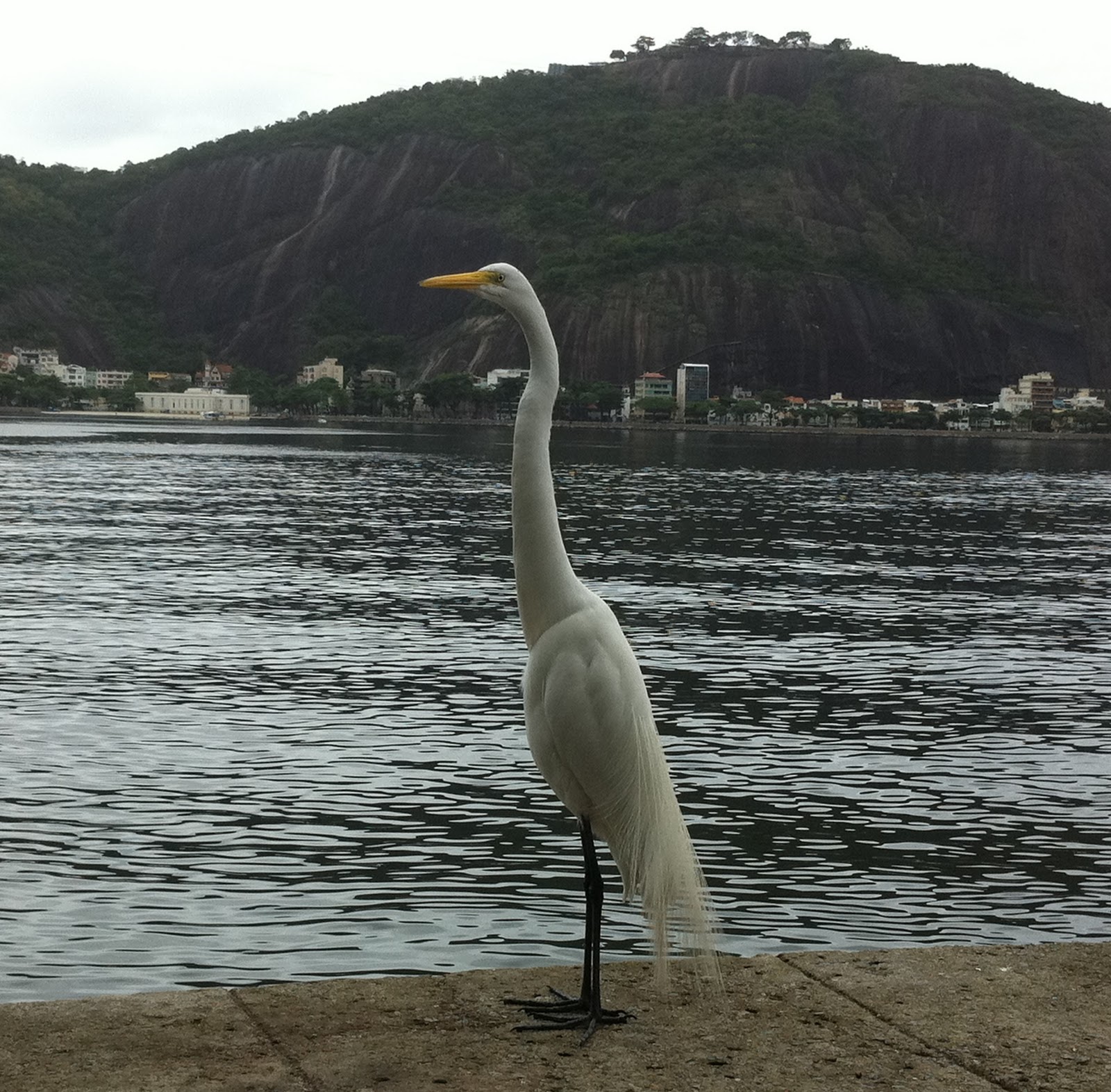 E aqui... uma garça com a Urca por detrás.