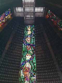Em baixo, a Catedral do Rio. Diferente de todas as catedrais que já vi. Moderníssima, do arquitecto Edgar Oliveira da Fonseca. Parece uma nave espacial.