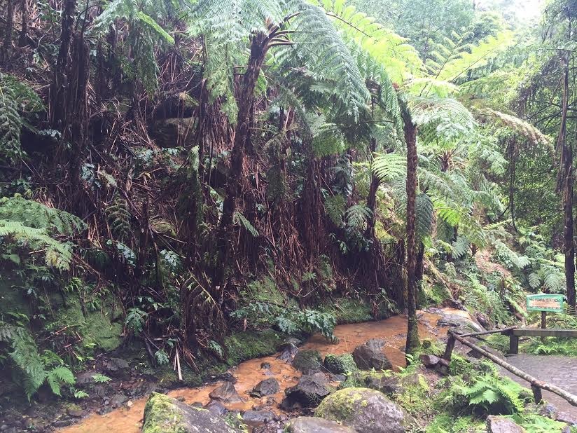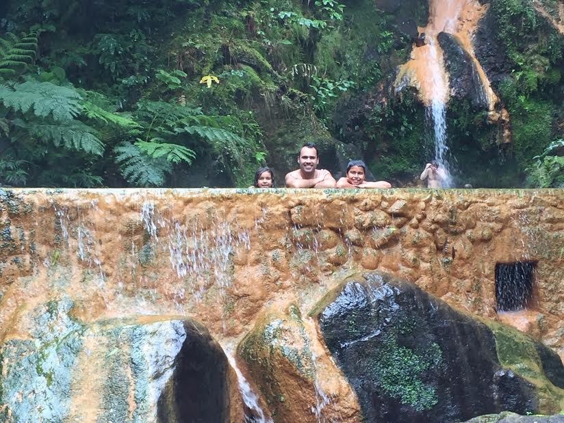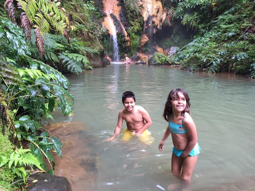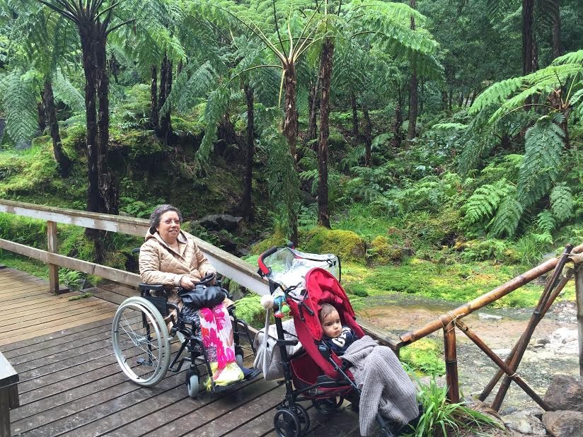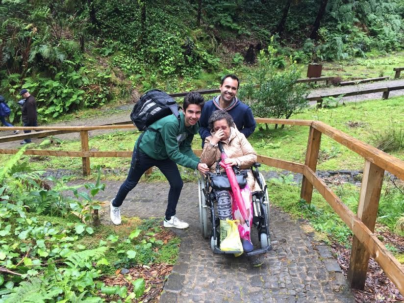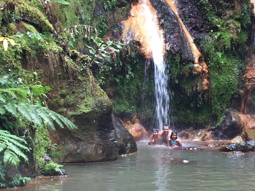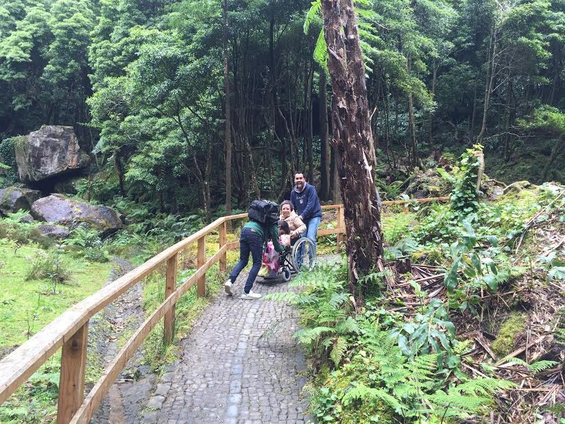 Seguimos para a Caldeira Velha. Empurrar a cadeira de rodas por aqueles caminhos íngremes e escorregadios acabou por ser uma aventura. O banho na caldeira foi a cereja no topo do bolo. Que maravilha!