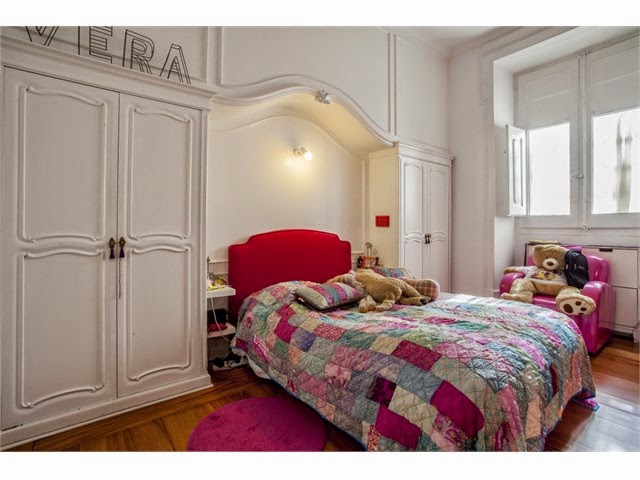Um quarto com 32,9 m2 (com um closet em madeira com 12,40 m2), outro quarto com 14,7 m2, o terceiro quarto com 20,9 m2 e o último com 13,8 m2. Tem cinco casas de banho, para que ninguém fique apeado em horas de aperto.