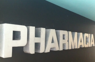 Há duas noites fomos com amigos jantar ao restaurante Pharmácia (chama-se assim porque fica no majestoso edifício da Associação Nacional de Farmácias). Nunca lá tinha ido e já há imenso tempo que tinha vontade (caramba, já abriu em 2011!). Gostei muito do conceito, apesar de não ter ficado louca da vida com a comida. O pica-pau não estava brilhante, a tábua de queijos deixava um bocadito a desejar, mas as migas e a farinheira estavam boas (como podem perceber, é só petiscos light).